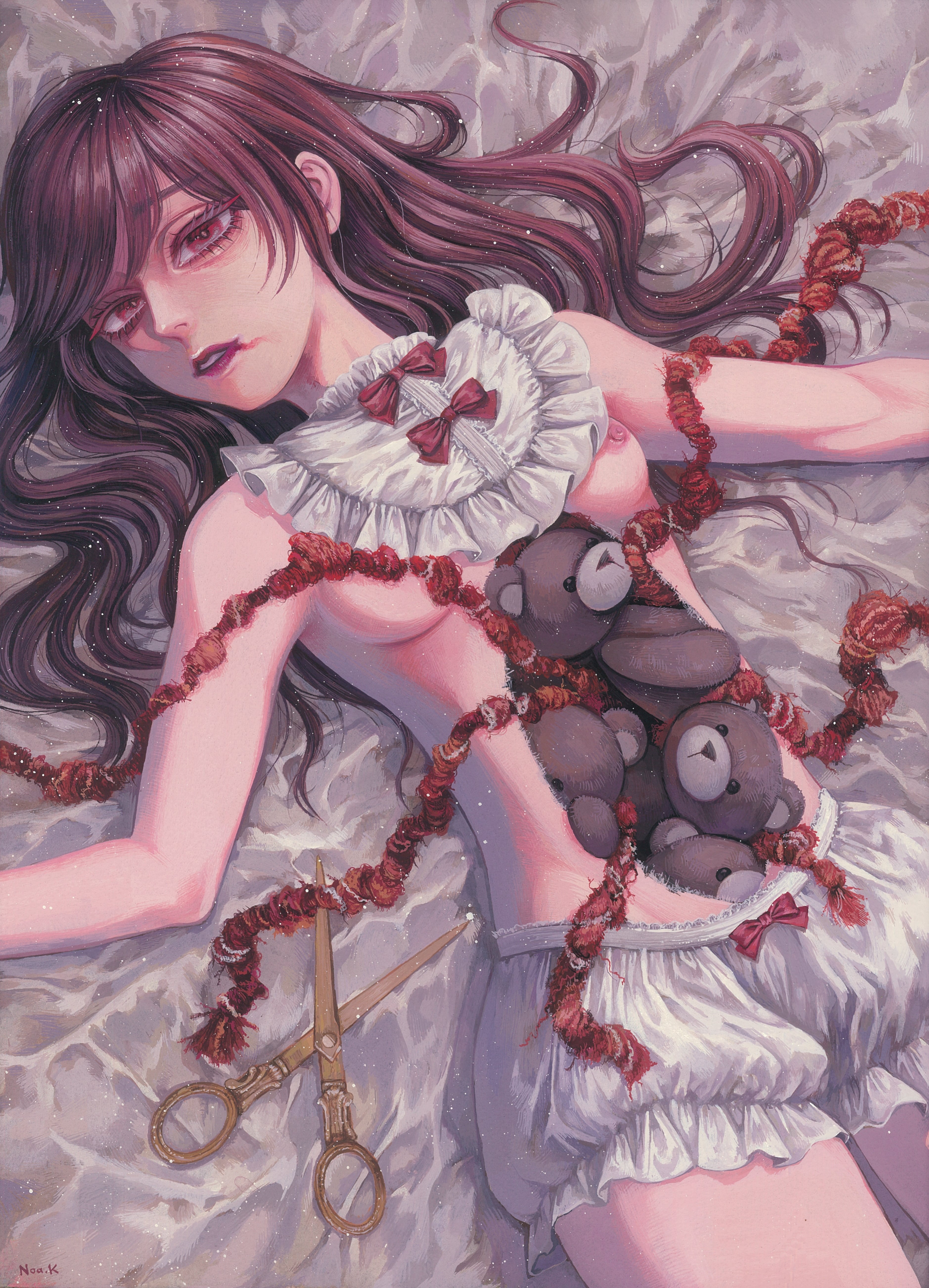 言葉では表現しきれない”もや”のような不定形の感覚や思考を、少女にも大人にもなりきれない不安定な女の子たちに投影し制作している。