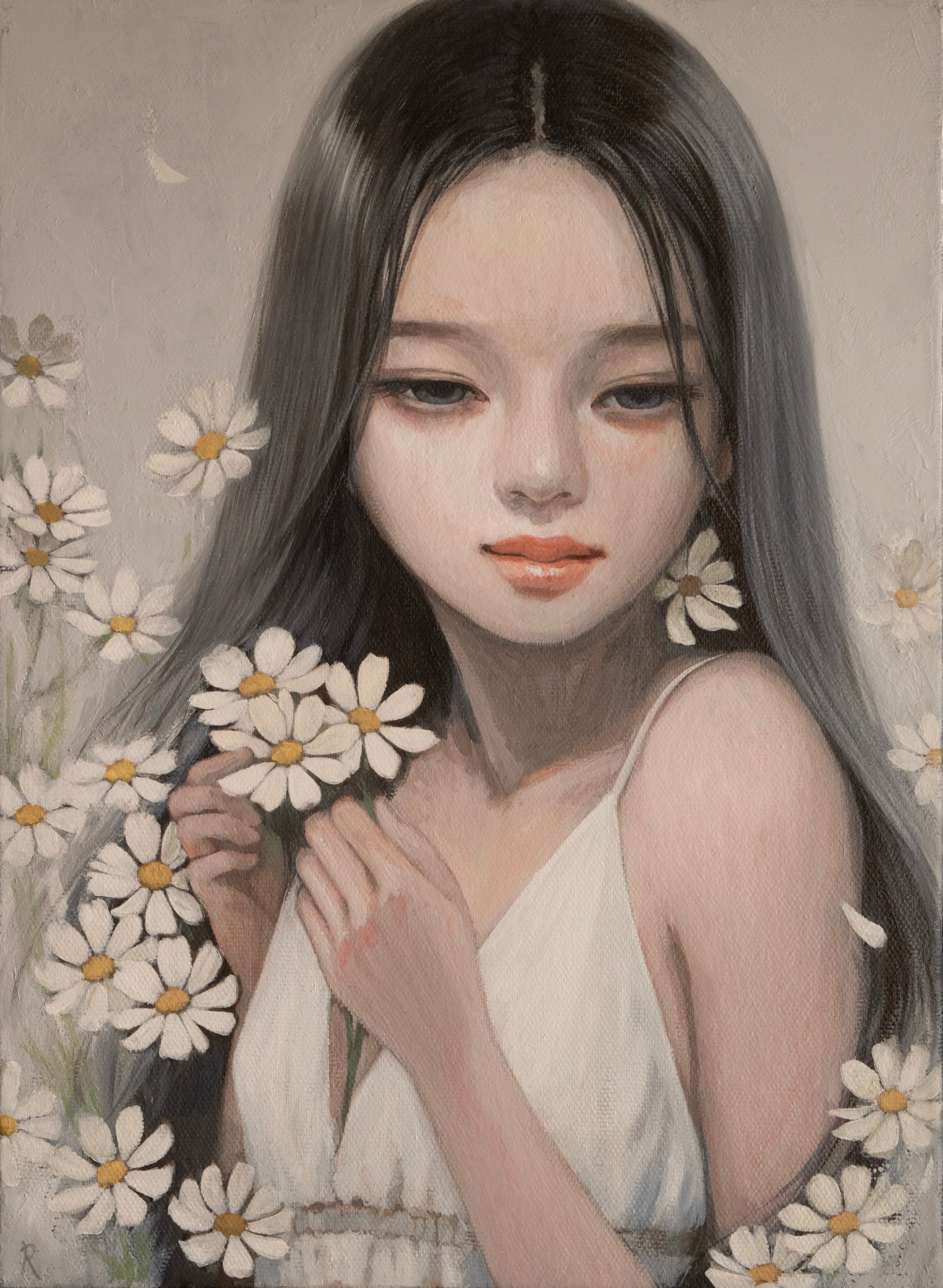 油絵で表情豊かな女性像を描いています。
